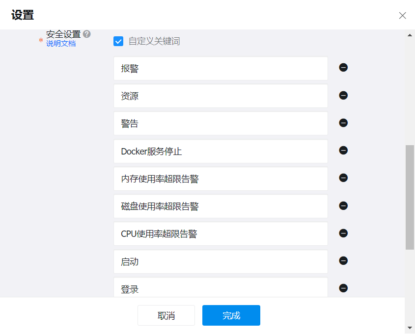 添加安全设置:钉钉机器人提供了三种安全设置方式,以保障信息传输的安全性。分别为 “自定义关键词”“加签”“IP 地址(段)”。本次我们选用 “自定义关键词” 的方式,此方式最多可设置 10 个关键词,当消息中至少包含其中 1 个关键词时,才能够成功发送。例如,我们可设置 “服务器资源告警” 作为关键词,确保只有包含该关键词的消息才能通过机器人发送。
